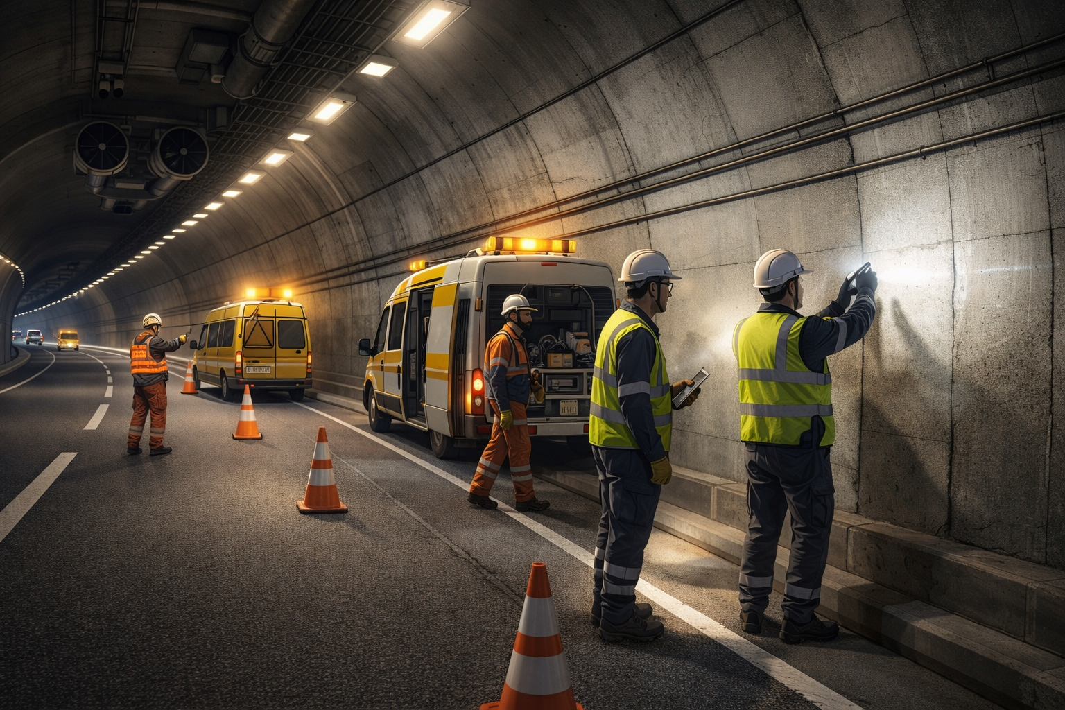 터널 유지관리는 일상·정기·긴급 점검과 보수·보강 작업으로 나뉘며, 훈련과 디지털 시스템이 이를 뒷받침합니다. 주요 활동은 다음과 같습니다: